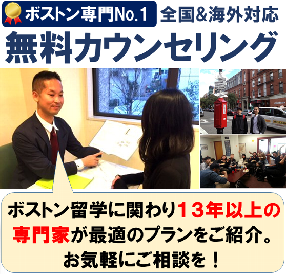 ボストンへの留学のことで、ご質問などありましたら些細なことでもお気軽にご連絡くださいませ。