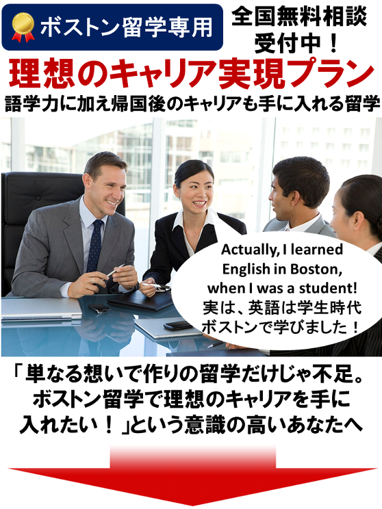 ボストン留学サポートでは、お客様のご希望を伺いまして、1人1人に合った留学プランを紹介させていただいてます。